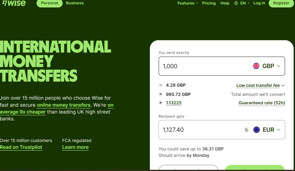 - Trusted financial services provider: Wise moves more than £ 500m worldwide each month, which means £ 22m hidden fee avoidance (hidden fees).